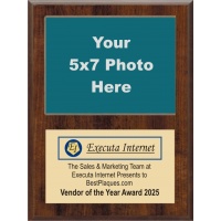 9x12 PINNACLE Photo Plaque Genuine Walnut Finish Fits a 5X7 Horizontal Photo