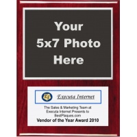 9x12 Photo Plaque Gloss Rosewood Piano Finish WITH FREE LOGO Fits a 5X7 Horizontal Photo - MINIMUM ORDER OF 4