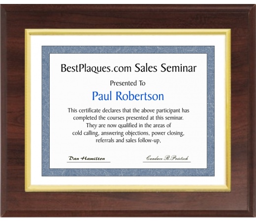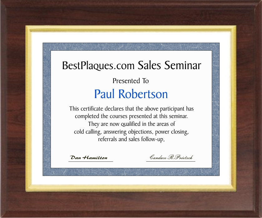 PRODUCT DETAILS Your certificate or photo slides under the Gold Frame and Clear Front. Fully Assembled (Certificate Not Included) Plaque has 2 slots on the back for hanging vertical or horizontal. Click Here ForPlaque Boxes - Stands - Accessories