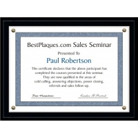 7X9 Matte Black Style Plaque Best Value Slide In Holds 5x7 Certificate Assembled