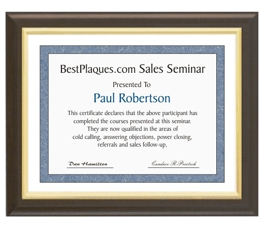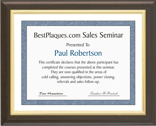 Includes PEEL AND STICK GOLD FRAME Certificate